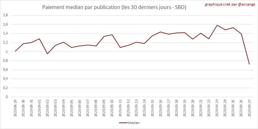 Ces graphiques montrent les paiements moyens et médians par publication au cours des 30 derniers jours.