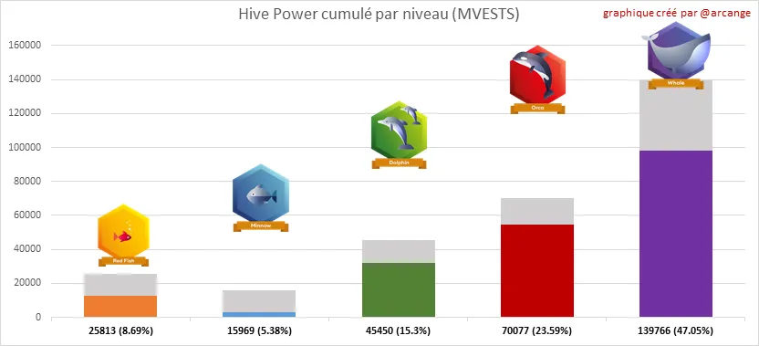 La partie grise de chaque colonne indique le Hive Power inutilisé par les comptes inactifs (voir la définition d'inactif ci-dessus).