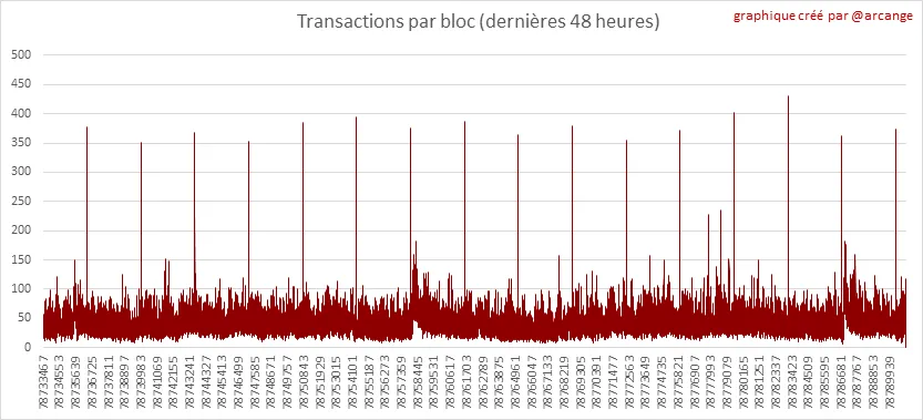 Ces graphiques montrent le nombre de transactions par jour, le nombre le plus élevé de transactions par bloc, le nombre moyen de transactions par bloc et le nombre de transactions par bloc au cours des 48 dernières heures. Cela vous donne une idée de toute l'activité sur la blockchain.