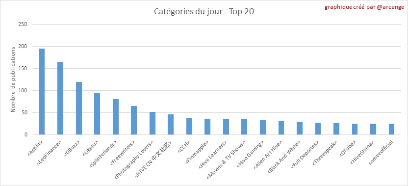 Ce graphique montre les catégories les plus utilisées pour les publications depuis la création de la blockchain et ce dernier jour.
