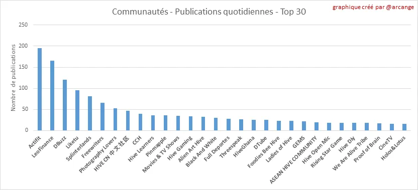 Ces graphiques montrent les communautés les plus actives en termes de publications depuis la leur création et pour le jour passé.