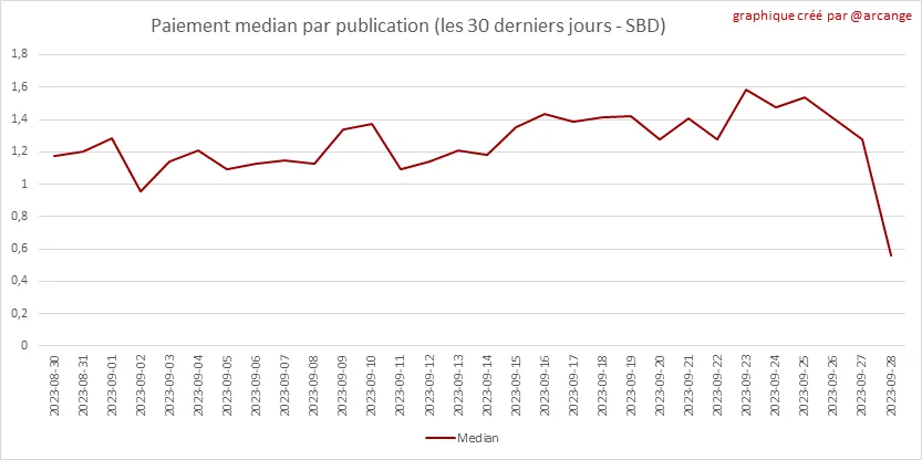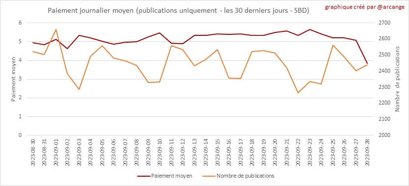 Ces graphiques montrent le total des paiements distribués (publications et commentaires) pour chaque jour.