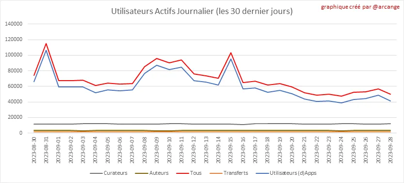 Toutes les informations présentées dans ce rapport sont basées sur les données collectées dans la blockchain jusqu'au 28-09-2023 à minuit, heure UTC. L'objectif de ce rapport est de vous fournir une vision claire de ce qui se passe quotidiennement dans la blockchain Hive.