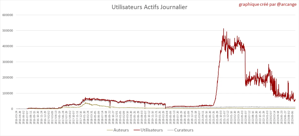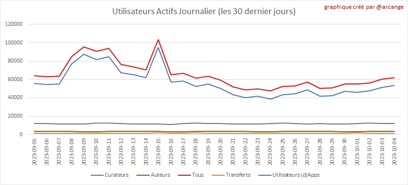 Toutes les informations présentées dans ce rapport sont basées sur les données collectées dans la blockchain jusqu'au 04-10-2023 à minuit, heure UTC. L'objectif de ce rapport est de vous fournir une vision claire de ce qui se passe quotidiennement dans la blockchain Hive.