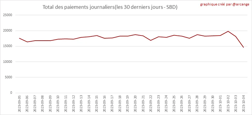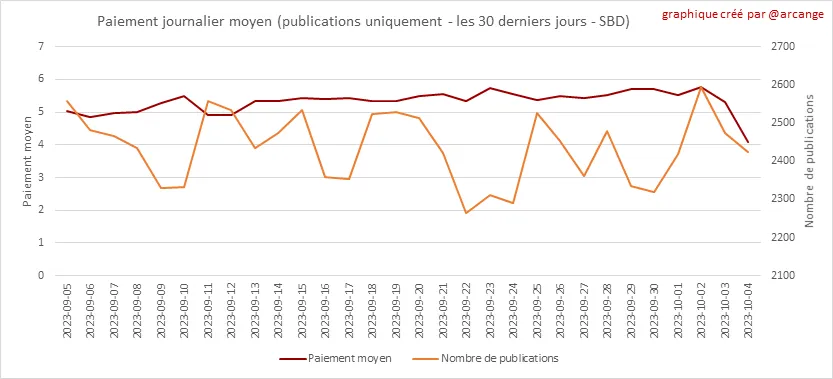 Ces graphiques montrent le total des paiements distribués (publications et commentaires) pour chaque jour.