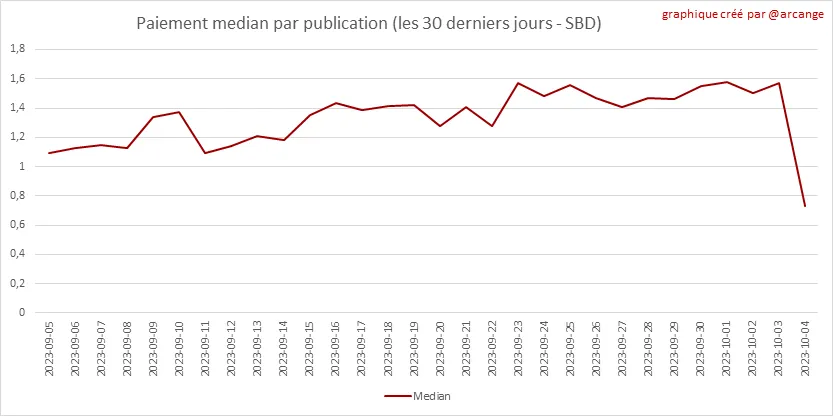 Ces graphiques montrent les paiements moyens et médians par publication au cours des 30 derniers jours.