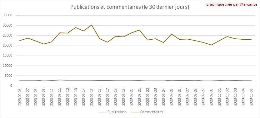 Ces graphiques montrent l'évolution des publications et des commentaires pour toute la durée de vie de la blockchain et pour les 30 derniers jours.