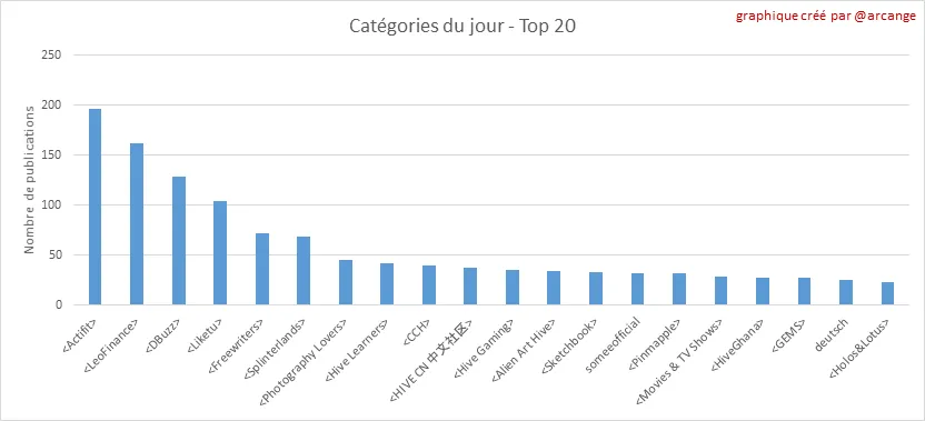 Ce graphique montre les catégories les plus utilisées pour les publications depuis la création de la blockchain et ce dernier jour.