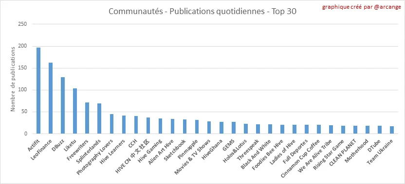 Ces graphiques montrent les communautés les plus actives en termes de publications depuis la leur création et pour le jour passé.