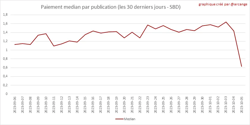 Ces graphiques montrent les paiements moyens et médians par publication au cours des 30 derniers jours.