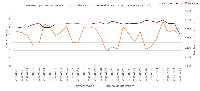 Ces graphiques montrent le total des paiements distribués (publications et commentaires) pour chaque jour.