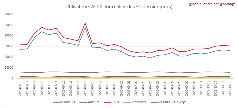 Toutes les informations présentées dans ce rapport sont basées sur les données collectées dans la blockchain jusqu'au 05-10-2023 à minuit, heure UTC. L'objectif de ce rapport est de vous fournir une vision claire de ce qui se passe quotidiennement dans la blockchain Hive.