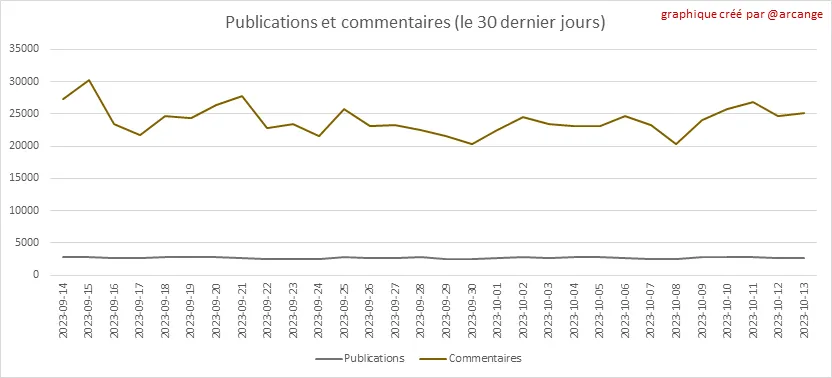 Ces graphiques montrent l'évolution des publications et des commentaires pour toute la durée de vie de la blockchain et pour les 30 derniers jours.