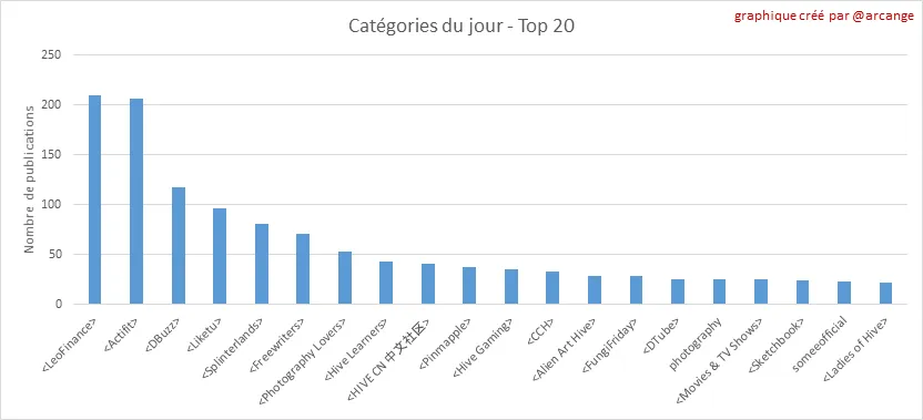 Ce graphique montre les catégories les plus utilisées pour les publications depuis la création de la blockchain et ce dernier jour.