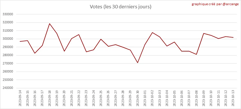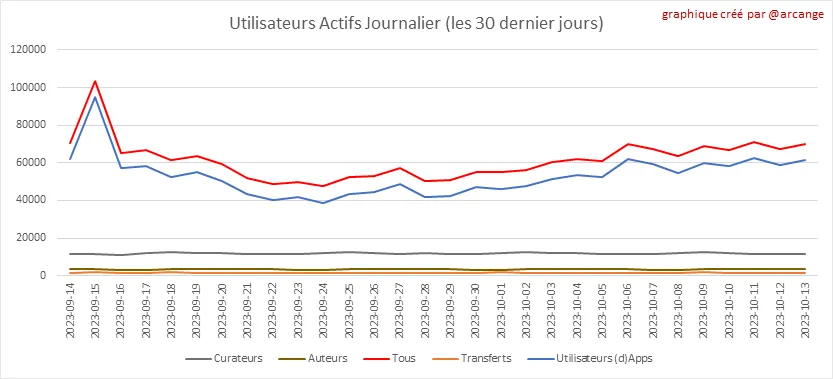 Toutes les informations présentées dans ce rapport sont basées sur les données collectées dans la blockchain jusqu'au 13-10-2023 à minuit, heure UTC. L'objectif de ce rapport est de vous fournir une vision claire de ce qui se passe quotidiennement dans la blockchain Hive.