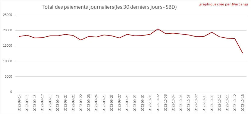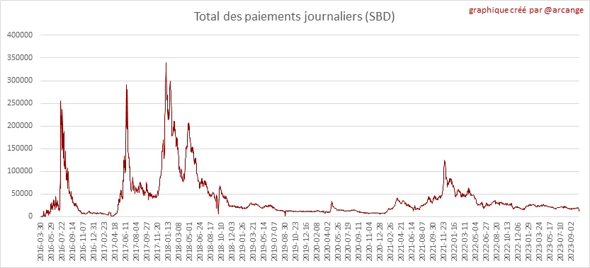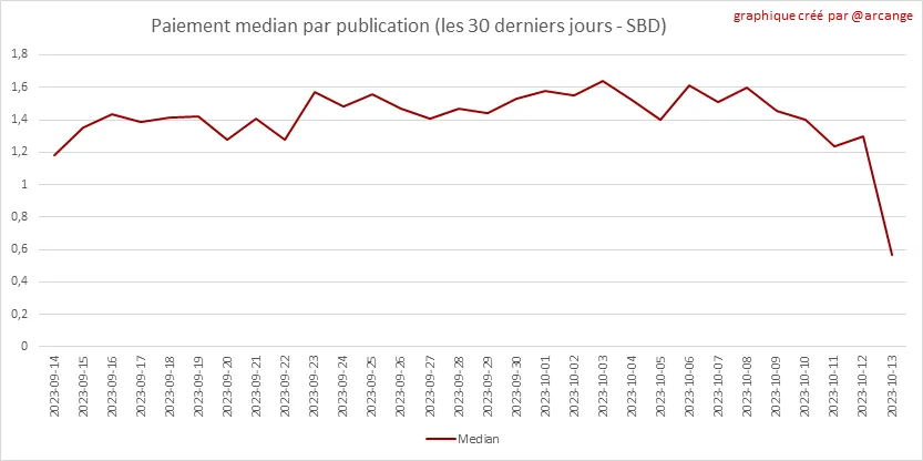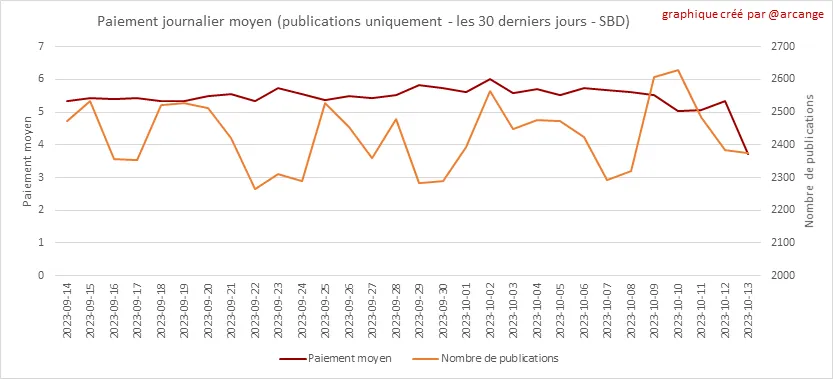 Ces graphiques montrent le total des paiements distribués (publications et commentaires) pour chaque jour.