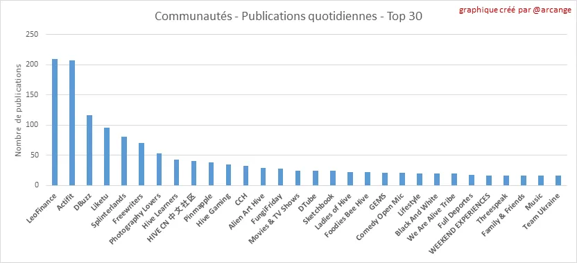 Ces graphiques montrent les communautés les plus actives en termes de publications depuis la leur création et pour le jour passé.
