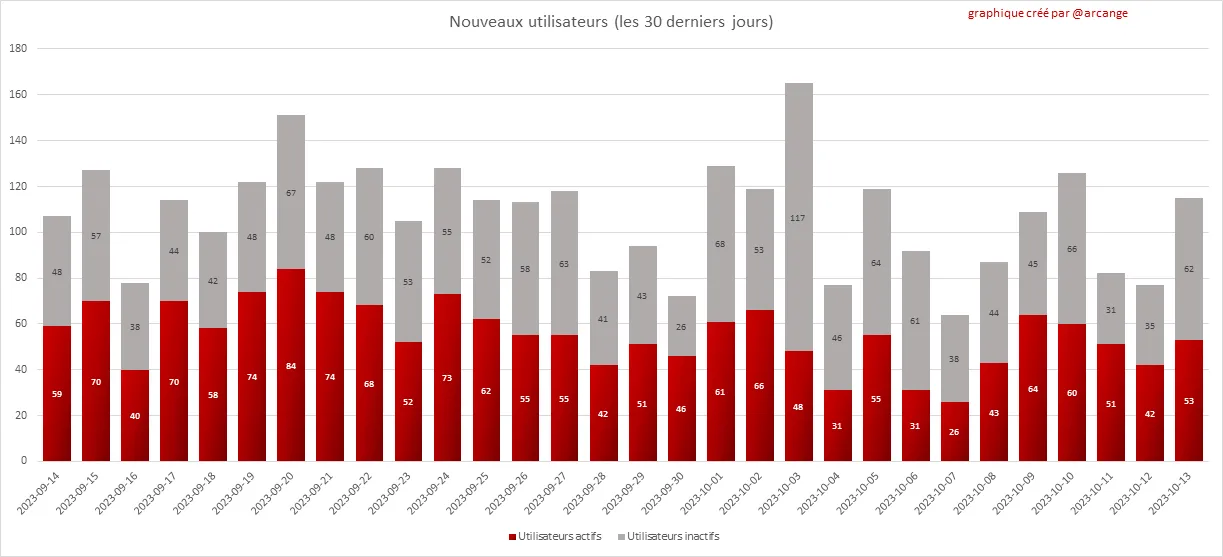 La partie grise de chaque colonne indique le nombre de comptes inactifs (ceux qui n'ont plus publié, commenté ou voté depuis 30 jours).