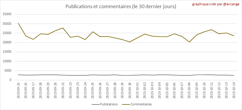 Ces graphiques montrent l'évolution des publications et des commentaires pour toute la durée de vie de la blockchain et pour les 30 derniers jours.