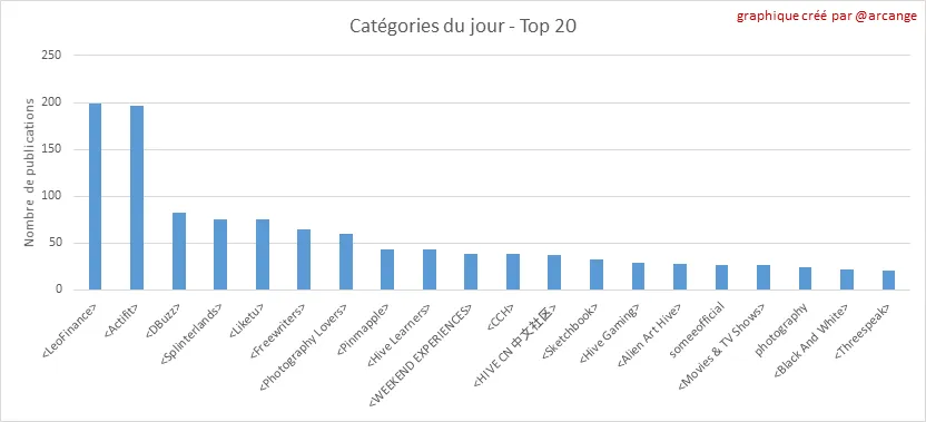 Ce graphique montre les catégories les plus utilisées pour les publications depuis la création de la blockchain et ce dernier jour.