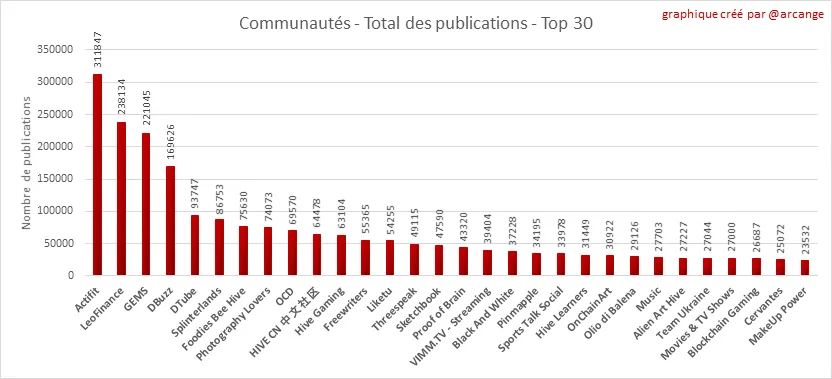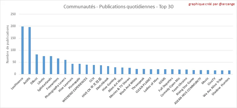 Ces graphiques montrent les communautés les plus actives en termes de publications depuis la leur création et pour le jour passé.