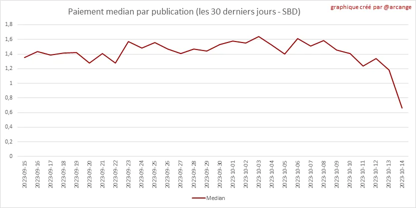 Ces graphiques montrent les paiements moyens et médians par publication au cours des 30 derniers jours.