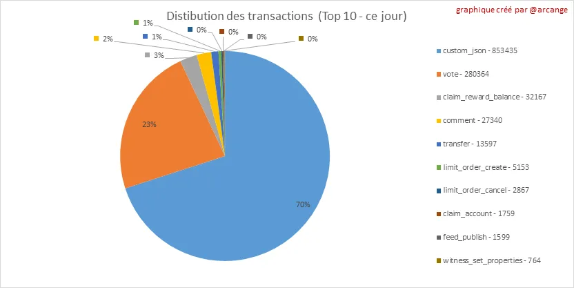 Ce graphique montre la répartition des 10 principaux types de transactions par nombre d'opérations effectuées sur la blockchain.