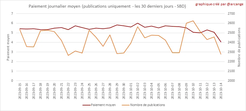 Ces graphiques montrent le total des paiements distribués (publications et commentaires) pour chaque jour.