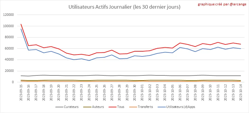 Toutes les informations présentées dans ce rapport sont basées sur les données collectées dans la blockchain jusqu'au 14-10-2023 à minuit, heure UTC. L'objectif de ce rapport est de vous fournir une vision claire de ce qui se passe quotidiennement dans la blockchain Hive.