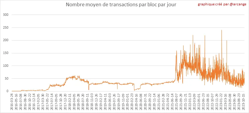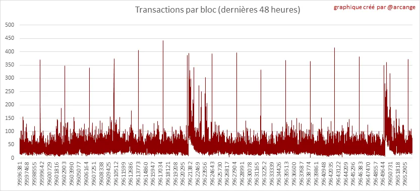 Ces graphiques montrent le nombre de transactions par jour, le nombre le plus élevé de transactions par bloc, le nombre moyen de transactions par bloc et le nombre de transactions par bloc au cours des 48 dernières heures. Cela vous donne une idée de toute l'activité sur la blockchain.