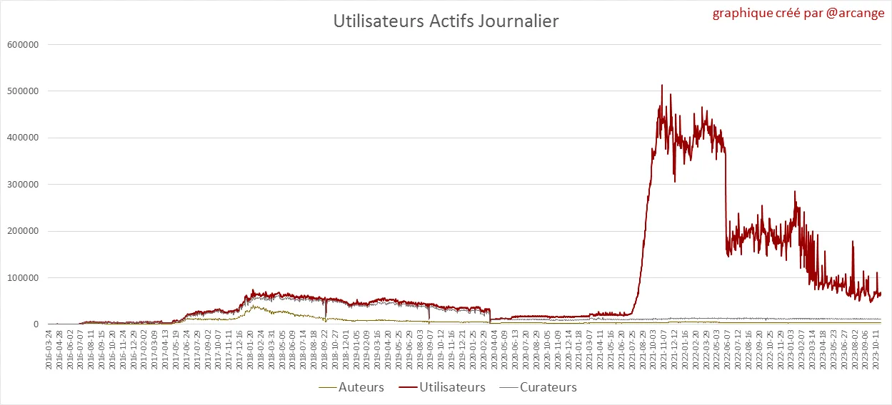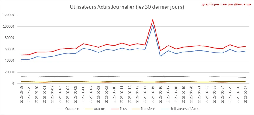 Toutes les informations présentées dans ce rapport sont basées sur les données collectées dans la blockchain jusqu'au 27-10-2023 à minuit, heure UTC. L'objectif de ce rapport est de vous fournir une vision claire de ce qui se passe quotidiennement dans la blockchain Hive.