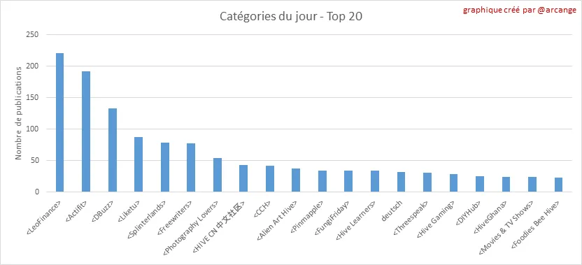 Ce graphique montre les catégories les plus utilisées pour les publications depuis la création de la blockchain et ce dernier jour.