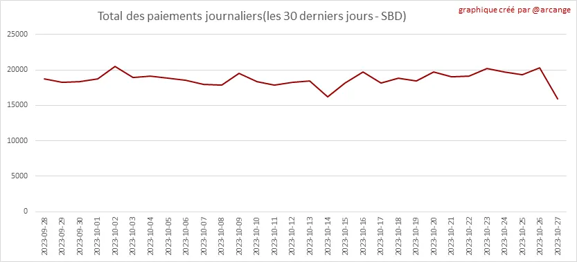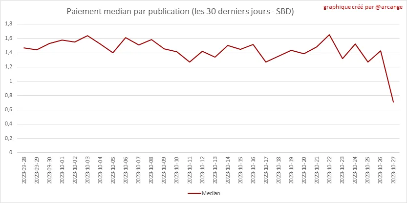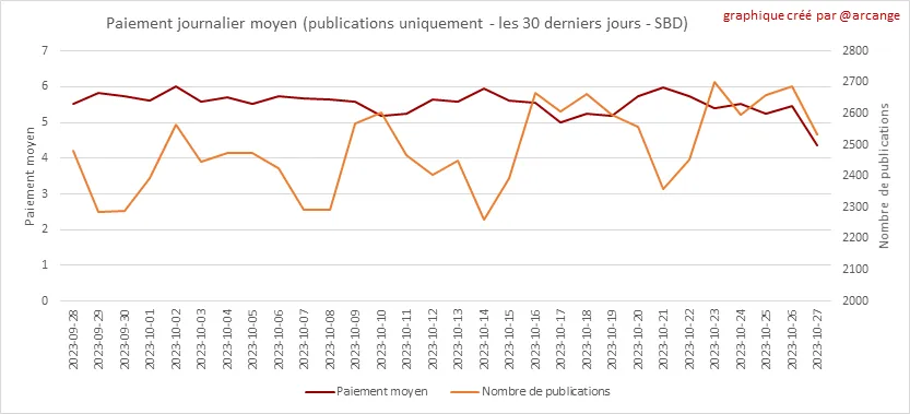 Ces graphiques montrent le total des paiements distribués (publications et commentaires) pour chaque jour.