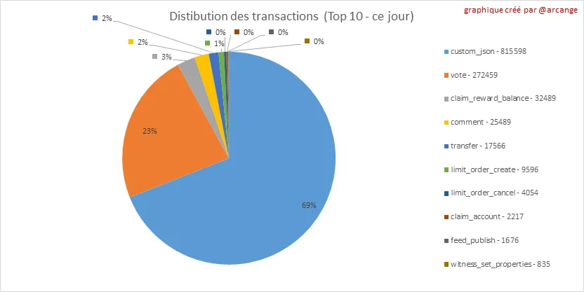 Ce graphique montre la répartition des 10 principaux types de transactions par nombre d'opérations effectuées sur la blockchain.