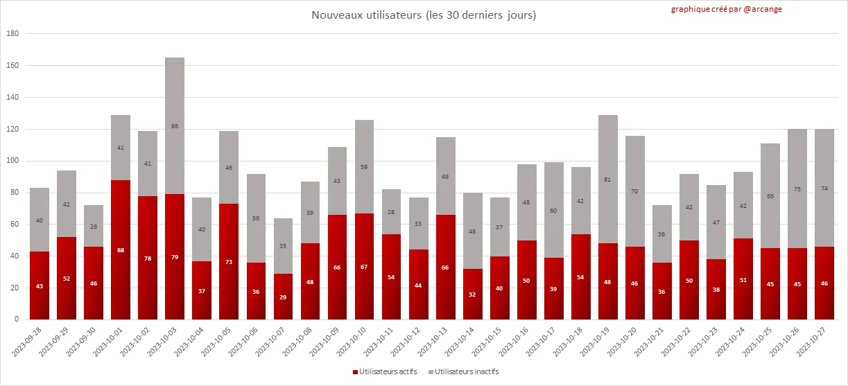 La partie grise de chaque colonne indique le nombre de comptes inactifs (ceux qui n'ont plus publié, commenté ou voté depuis 30 jours).
