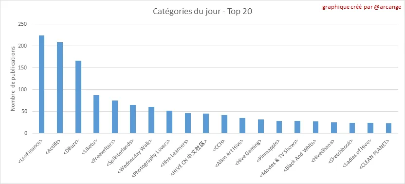 Ce graphique montre les catégories les plus utilisées pour les publications depuis la création de la blockchain et ce dernier jour.