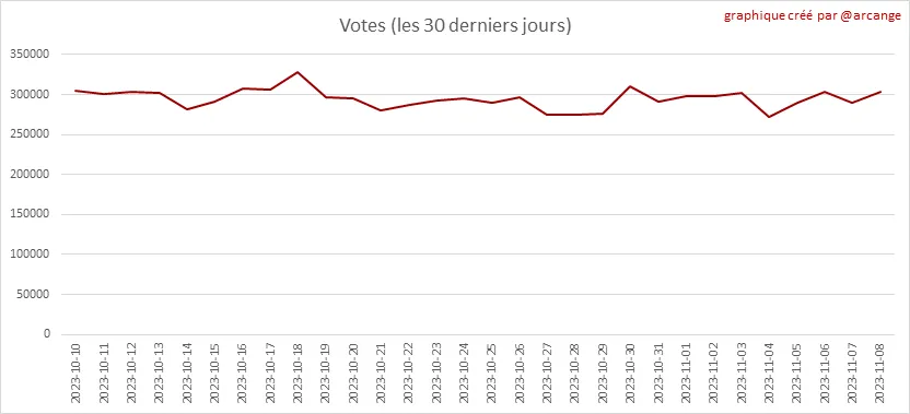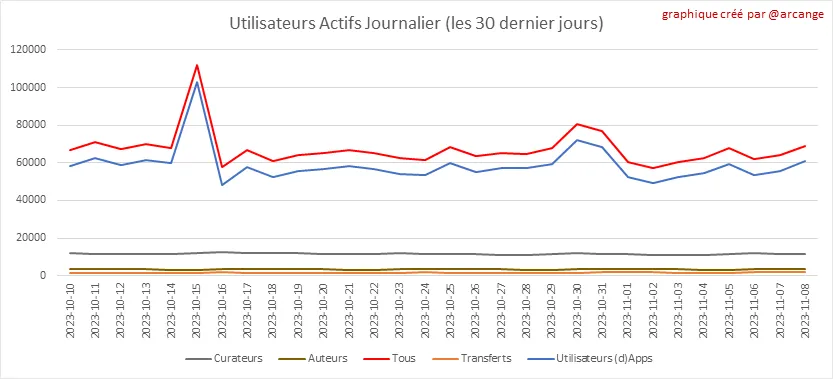 Toutes les informations présentées dans ce rapport sont basées sur les données collectées dans la blockchain jusqu'au 08-11-2023 à minuit, heure UTC. L'objectif de ce rapport est de vous fournir une vision claire de ce qui se passe quotidiennement dans la blockchain Hive.