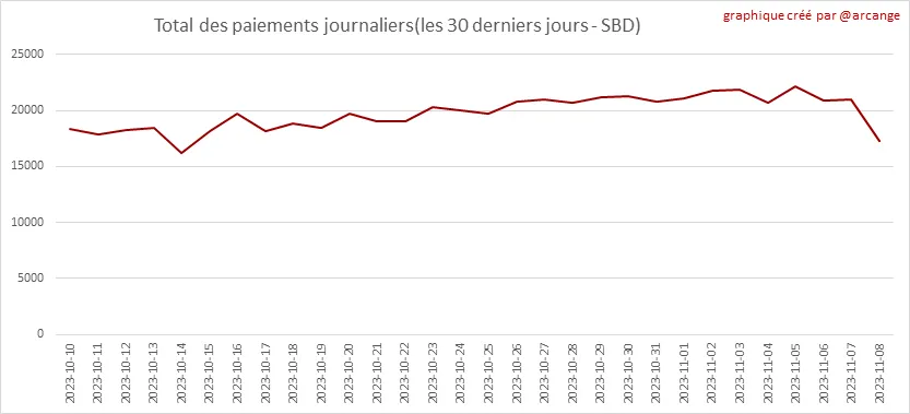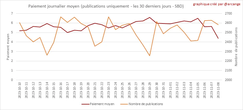 Ces graphiques montrent le total des paiements distribués (publications et commentaires) pour chaque jour.
