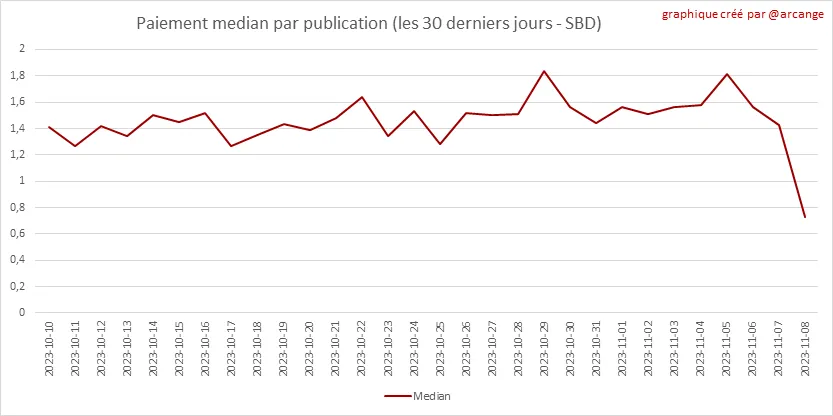 Ces graphiques montrent les paiements moyens et médians par publication au cours des 30 derniers jours.