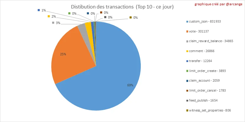 Ce graphique montre la répartition des 10 principaux types de transactions par nombre d'opérations effectuées sur la blockchain.