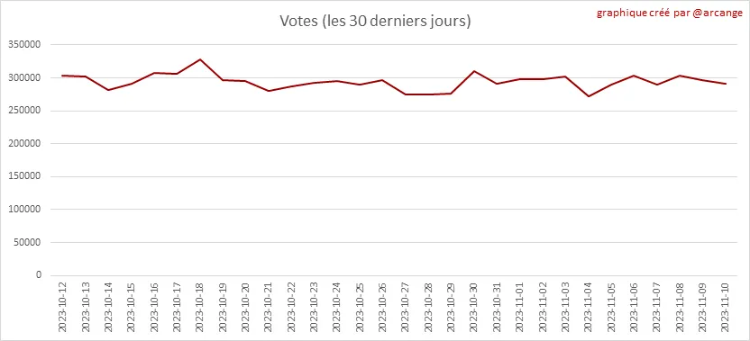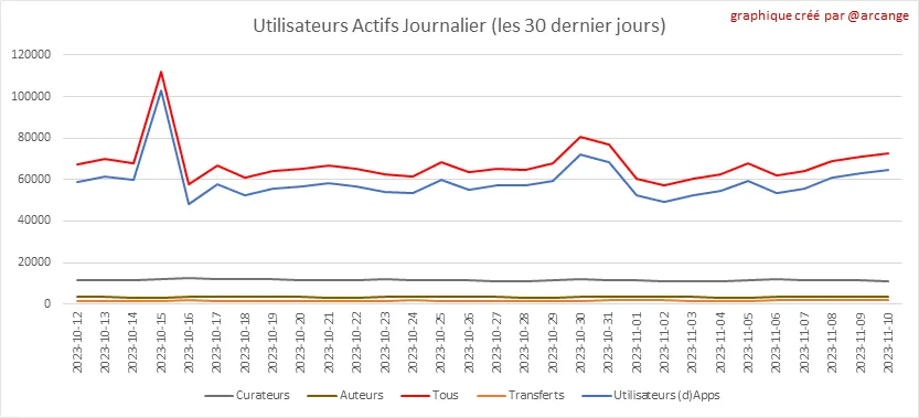 Toutes les informations présentées dans ce rapport sont basées sur les données collectées dans la blockchain jusqu'au 10-11-2023 à minuit, heure UTC. L'objectif de ce rapport est de vous fournir une vision claire de ce qui se passe quotidiennement dans la blockchain Hive.