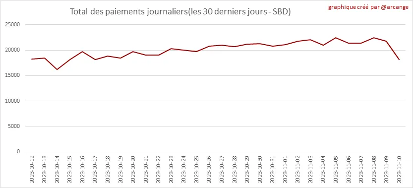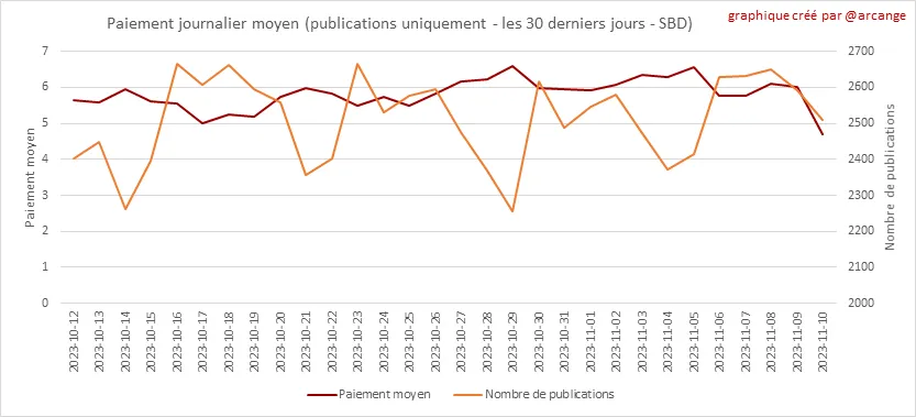 Ces graphiques montrent le total des paiements distribués (publications et commentaires) pour chaque jour.