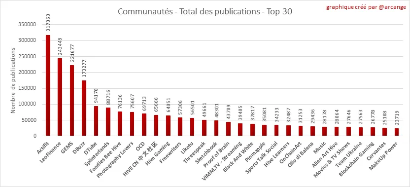 Ces graphiques montrent les communautés les plus actives en termes de publications depuis la leur création et pour le jour passé.