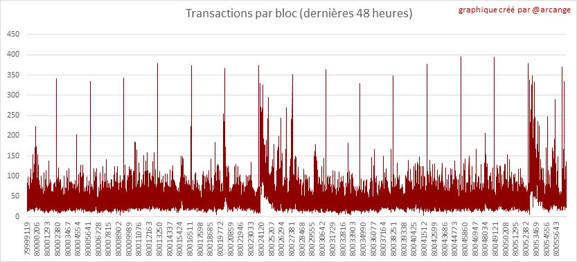 Ces graphiques montrent le nombre de transactions par jour, le nombre le plus élevé de transactions par bloc, le nombre moyen de transactions par bloc et le nombre de transactions par bloc au cours des 48 dernières heures. Cela vous donne une idée de toute l'activité sur la blockchain.