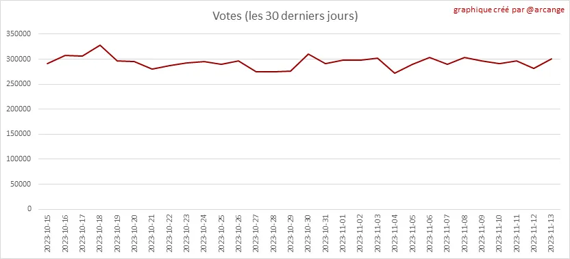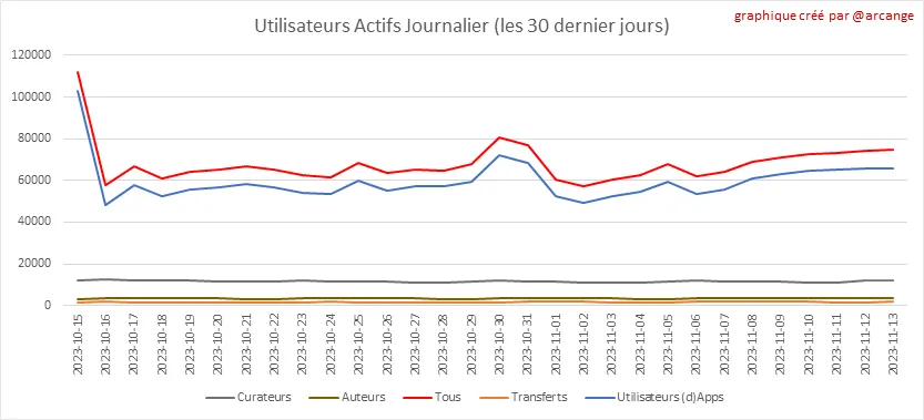 Toutes les informations présentées dans ce rapport sont basées sur les données collectées dans la blockchain jusqu'au 13-11-2023 à minuit, heure UTC. L'objectif de ce rapport est de vous fournir une vision claire de ce qui se passe quotidiennement dans la blockchain Hive.