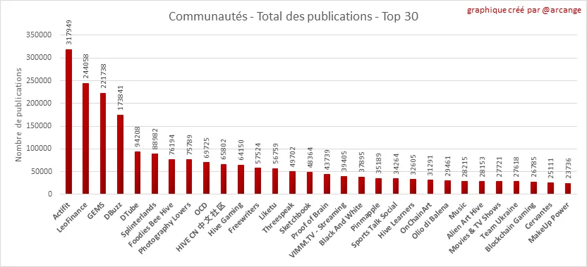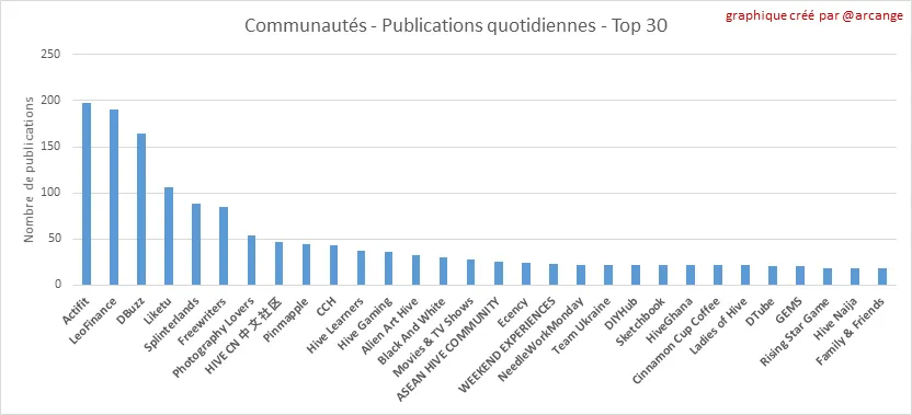Ces graphiques montrent les communautés les plus actives en termes de publications depuis la leur création et pour le jour passé.