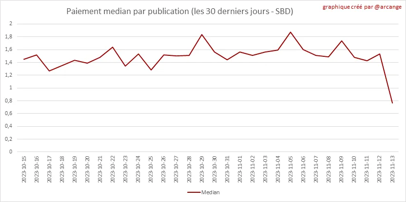 Ces graphiques montrent les paiements moyens et médians par publication au cours des 30 derniers jours.