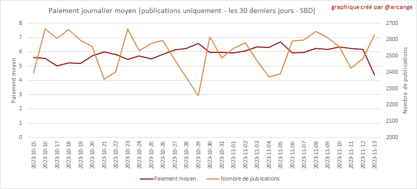 Ces graphiques montrent le total des paiements distribués (publications et commentaires) pour chaque jour.
