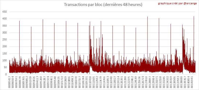 Ces graphiques montrent le nombre de transactions par jour, le nombre le plus élevé de transactions par bloc, le nombre moyen de transactions par bloc et le nombre de transactions par bloc au cours des 48 dernières heures. Cela vous donne une idée de toute l'activité sur la blockchain.