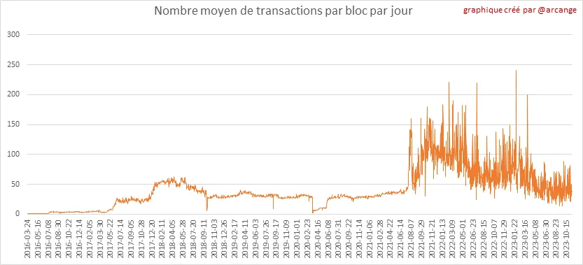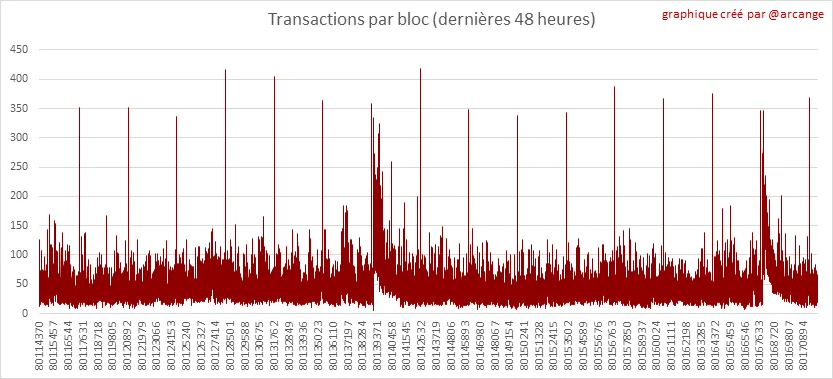 Ces graphiques montrent le nombre de transactions par jour, le nombre le plus élevé de transactions par bloc, le nombre moyen de transactions par bloc et le nombre de transactions par bloc au cours des 48 dernières heures. Cela vous donne une idée de toute l'activité sur la blockchain.